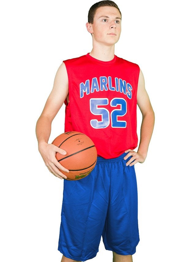 The sleeveless jersey features a sleek athletic fit with reinforced stitching for durability, while the matching shorts offer an elastic waistband with adjustable drawstrings for a secure, customized fit. The lightweight, breathable mesh fabric ensures maximum airflow, allowing unrestricted movement during intense gameplay.